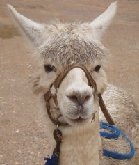 Llamas are closely related to alpacas, but larger, and do not have the same quality of fibre. Llamas are more commonly kept for meat or as a pack animal. The males can carry weights up to 25% of their body weight. Like the Alpacas they are very gentle, intelligent, and easily trained animals. There are two types of Llamas. Most are non-woolly llamas which have a coarse, short fibre. The others (Woolly Llamas) have a long fibre, which is generally soft, but coarser than alpaca fibre. They require similar conditions to Alpacas. The females can give birth to one cria (baby llama) per year. llamas have an expected life span of 20-25 years.